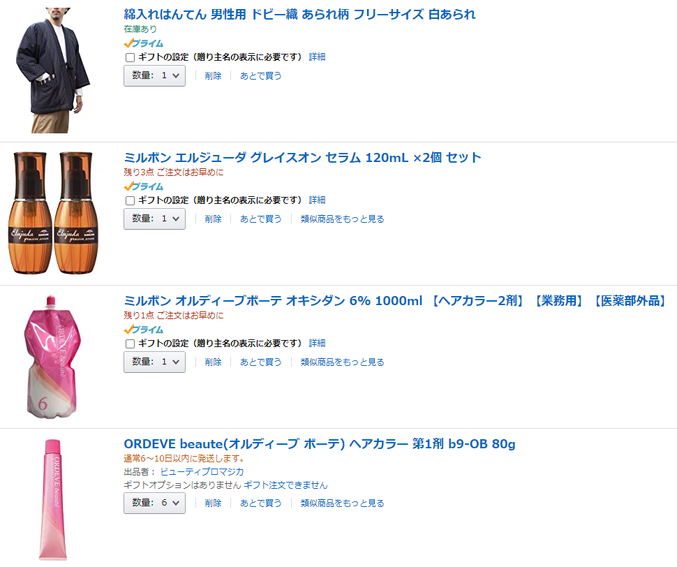 奥さんから頼まれた化粧品(1万弱)を注文。