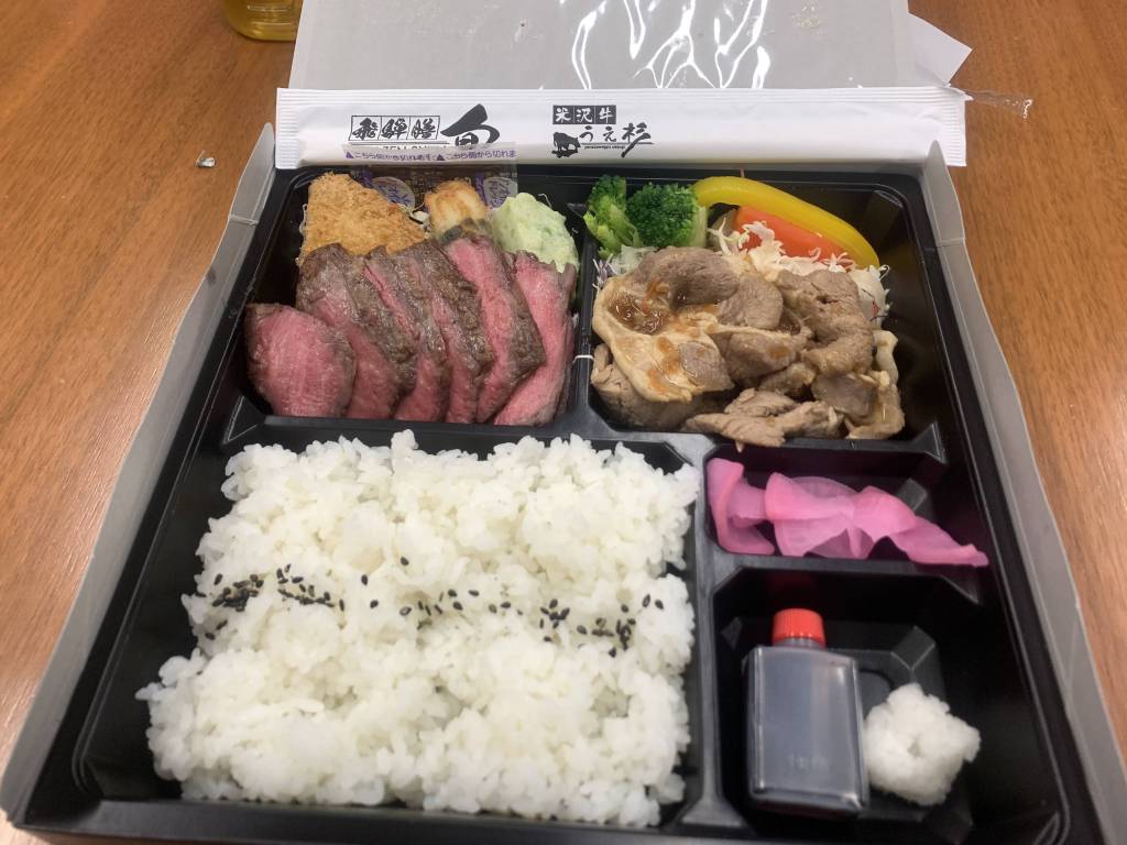 ランチは関連部署との合同で、高級和牛弁当を頂く。