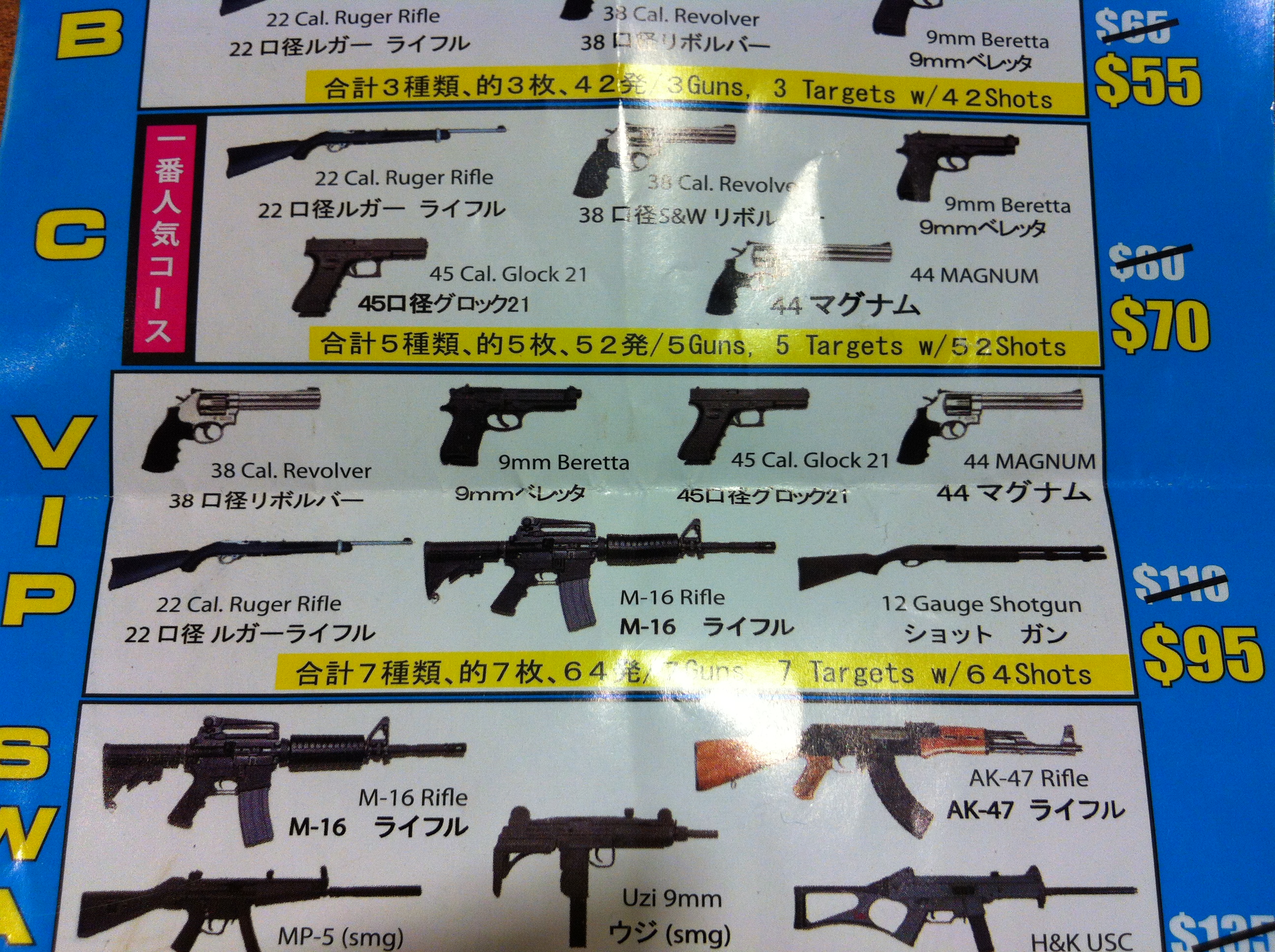 彼女が終わった後に、自分は7種類ぐらいの銃を体験。