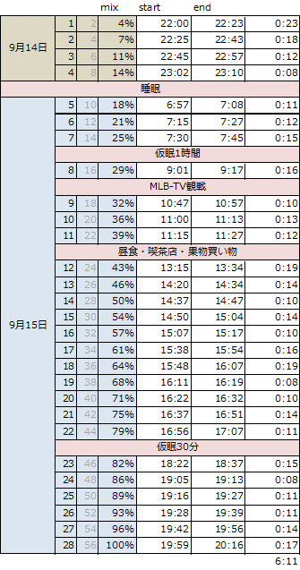 17時頃に再度30分ほど仮眠。