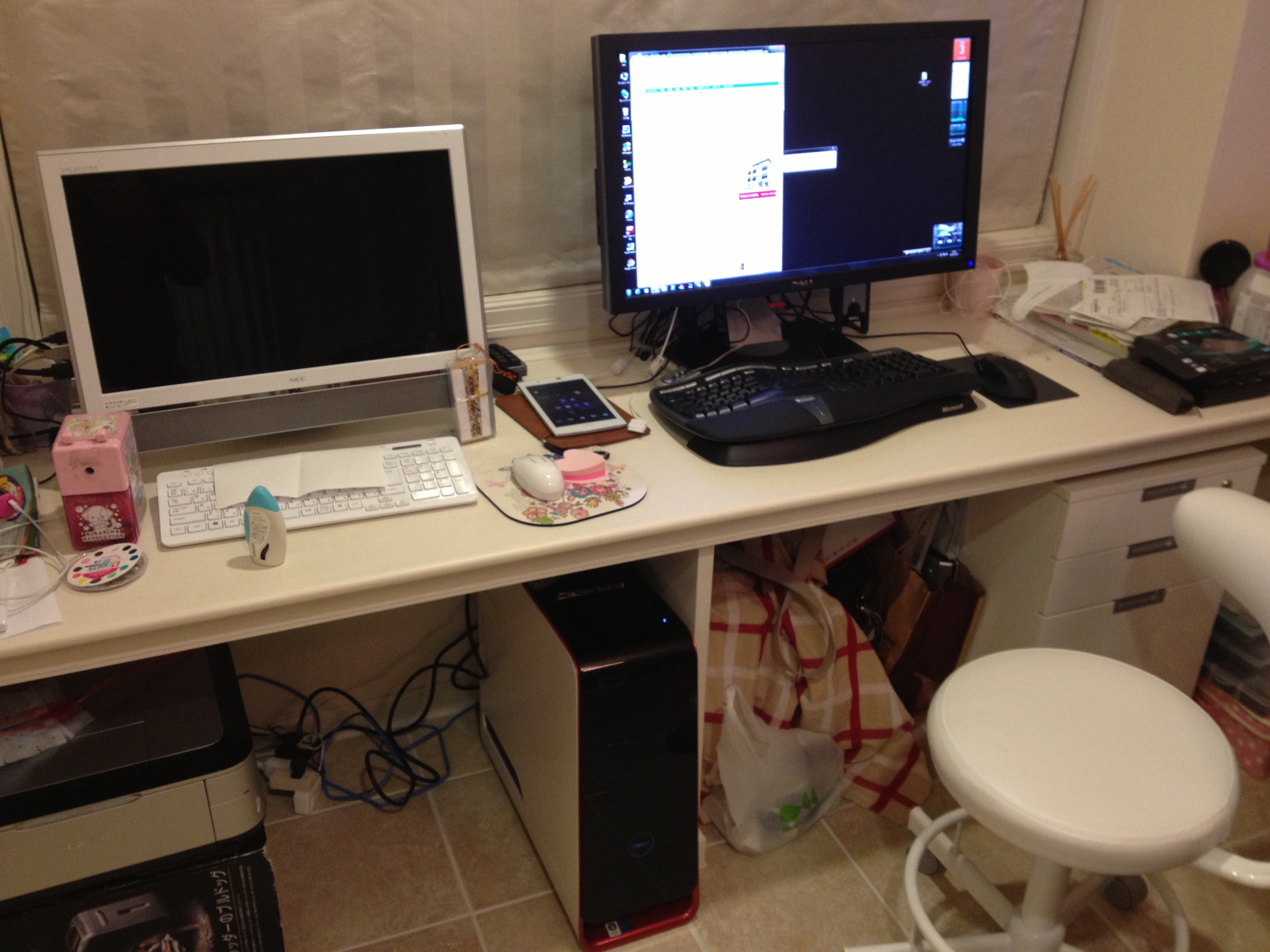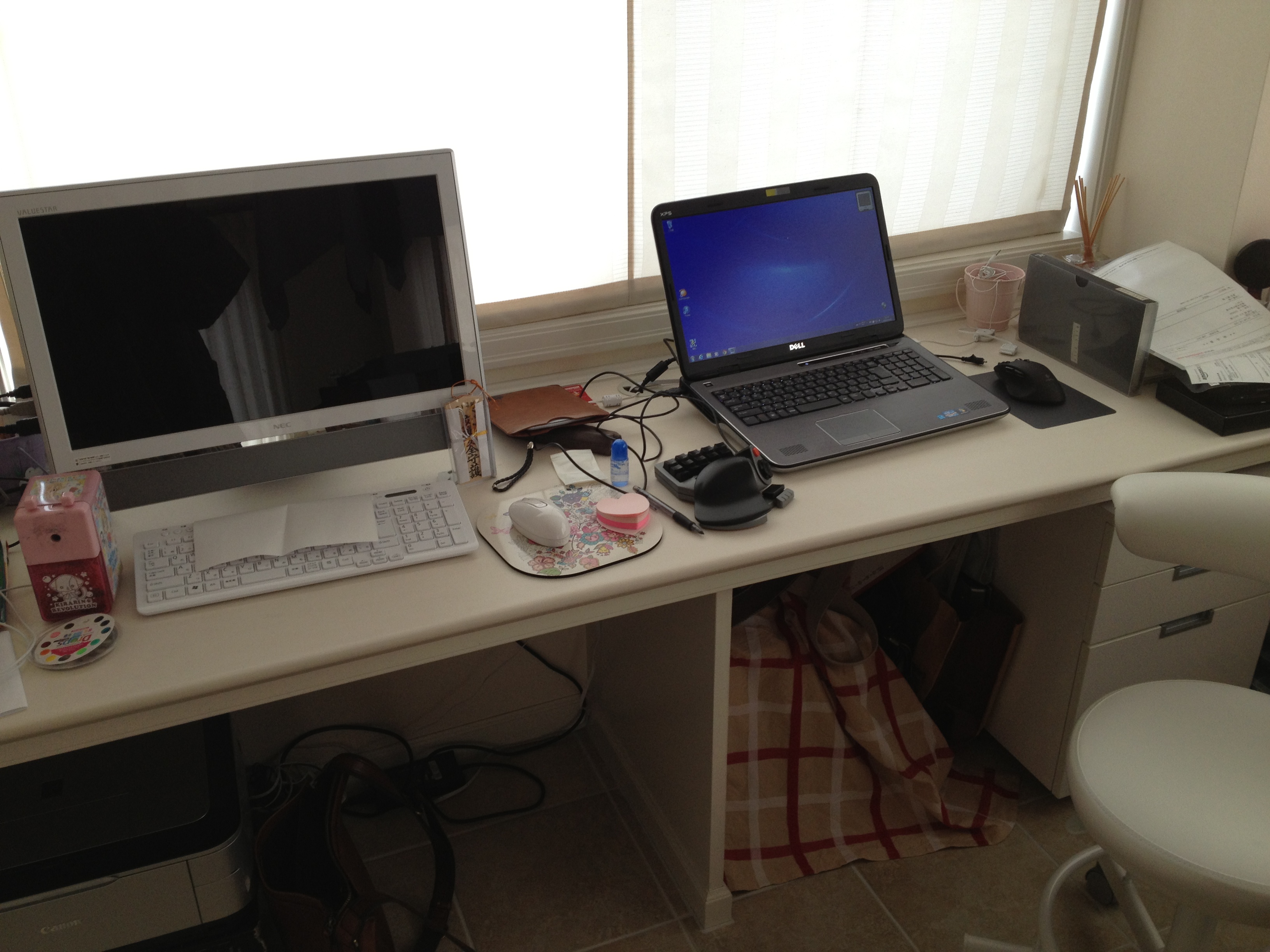 帰宅後、PC&モニタを運んでセットアップ。XPS 435