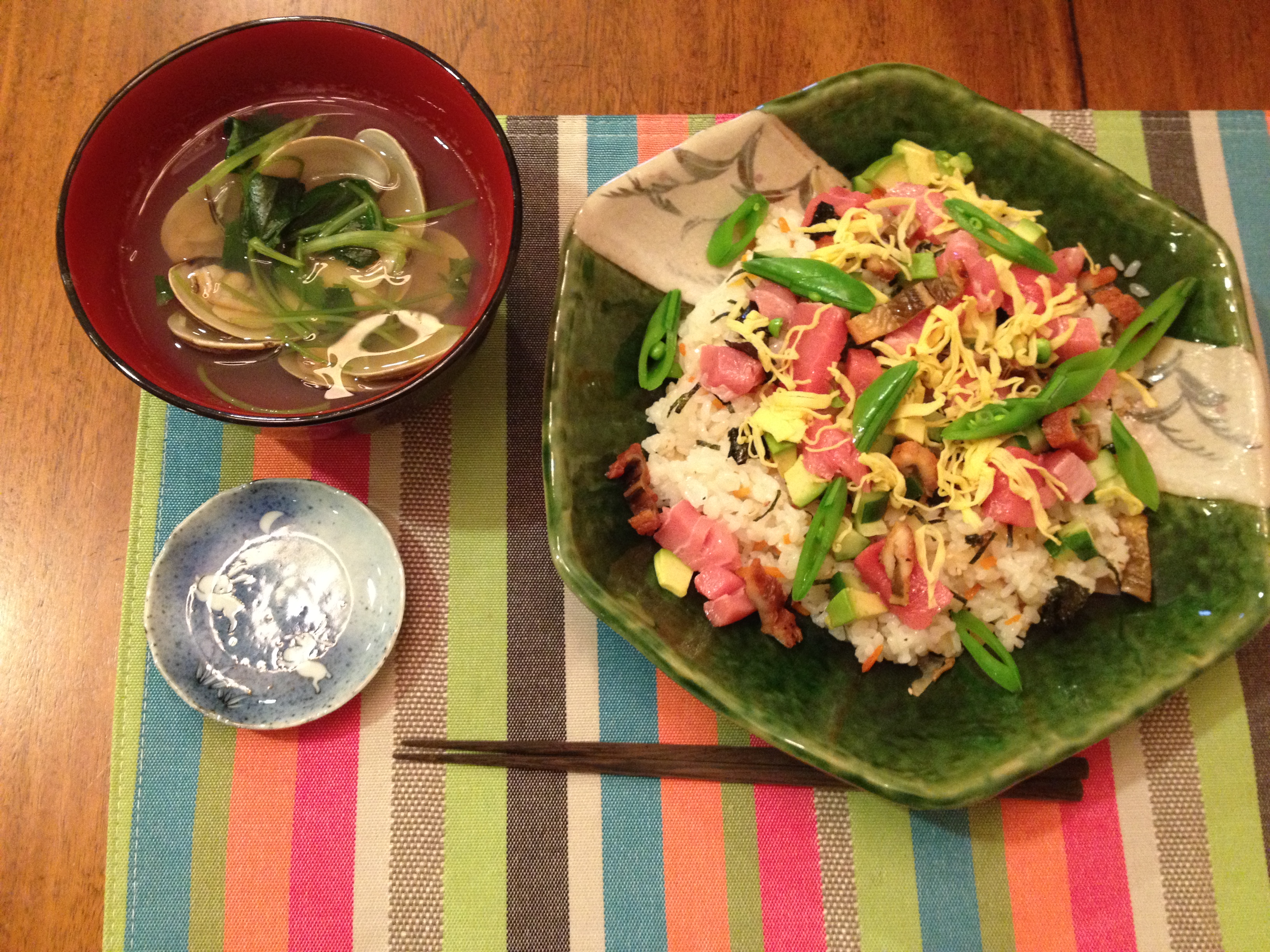 本日は、ひな祭りってことで、チラシ寿司とはまぐりを頂く。