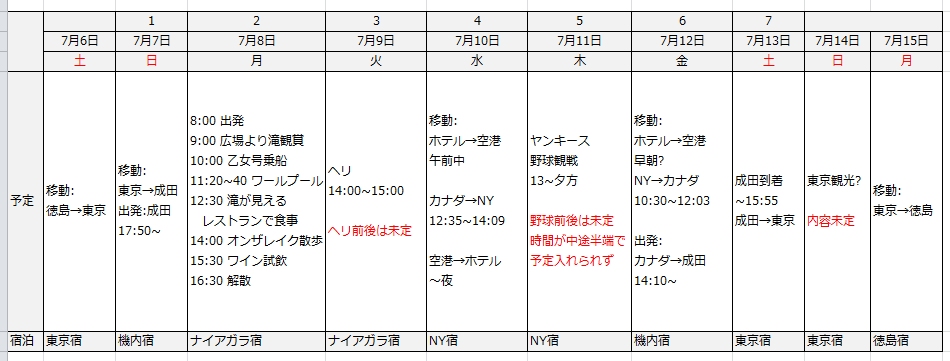 NYの野球の前後の時間、滝のヘリの前後の時間、何か予定を入れなくては、、、。(めんど)