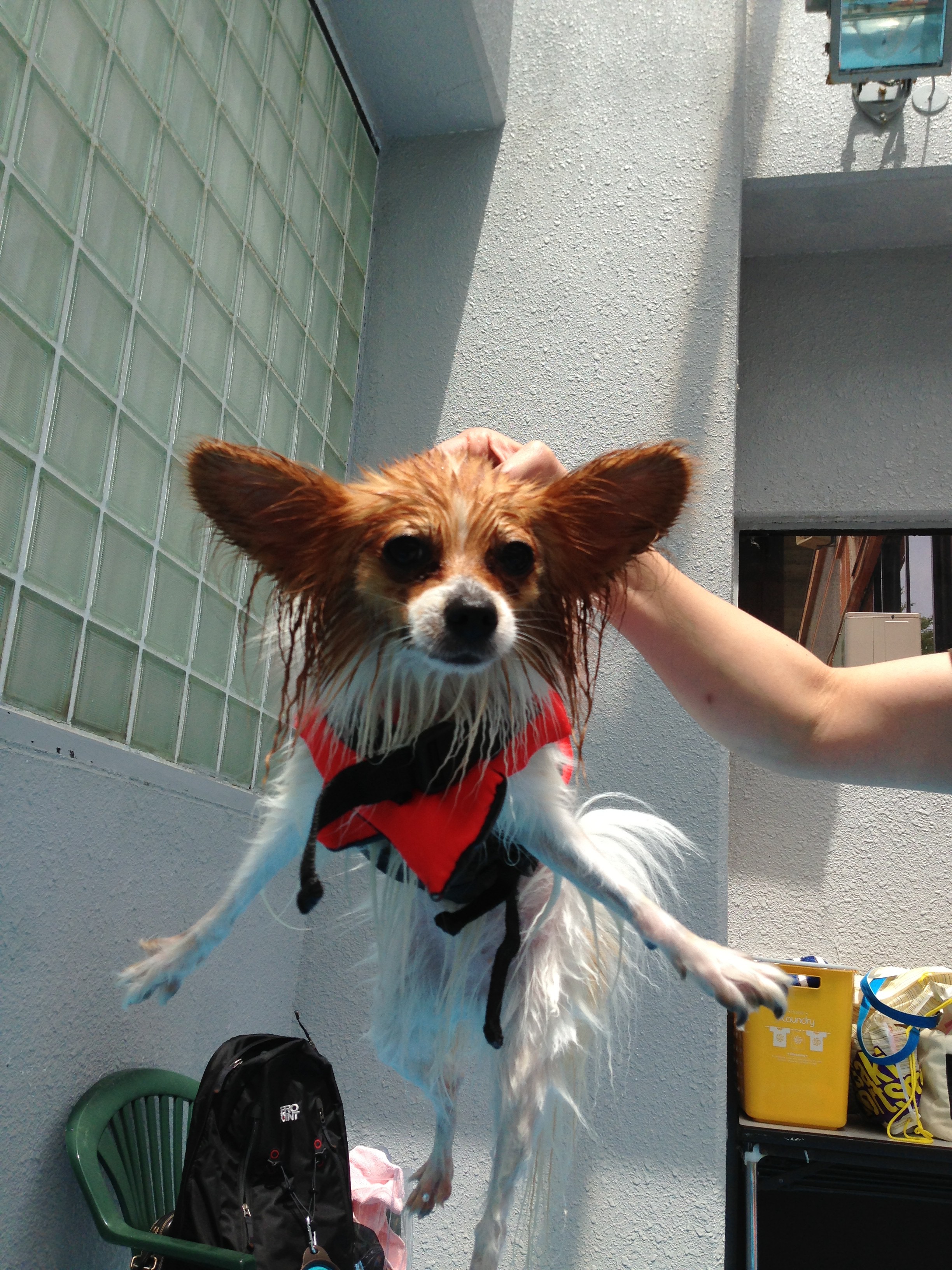 1時間ほど犬はプールへ。プールに飛び込む勇気が無いと思っていたら