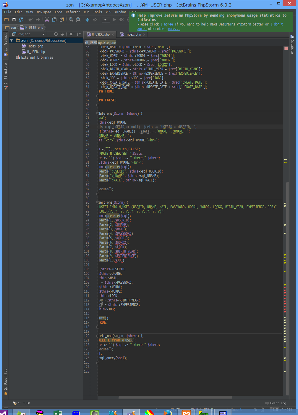 PHPはとりあえず、ユーザーアカウントの登録&メンテナンスを目指す。