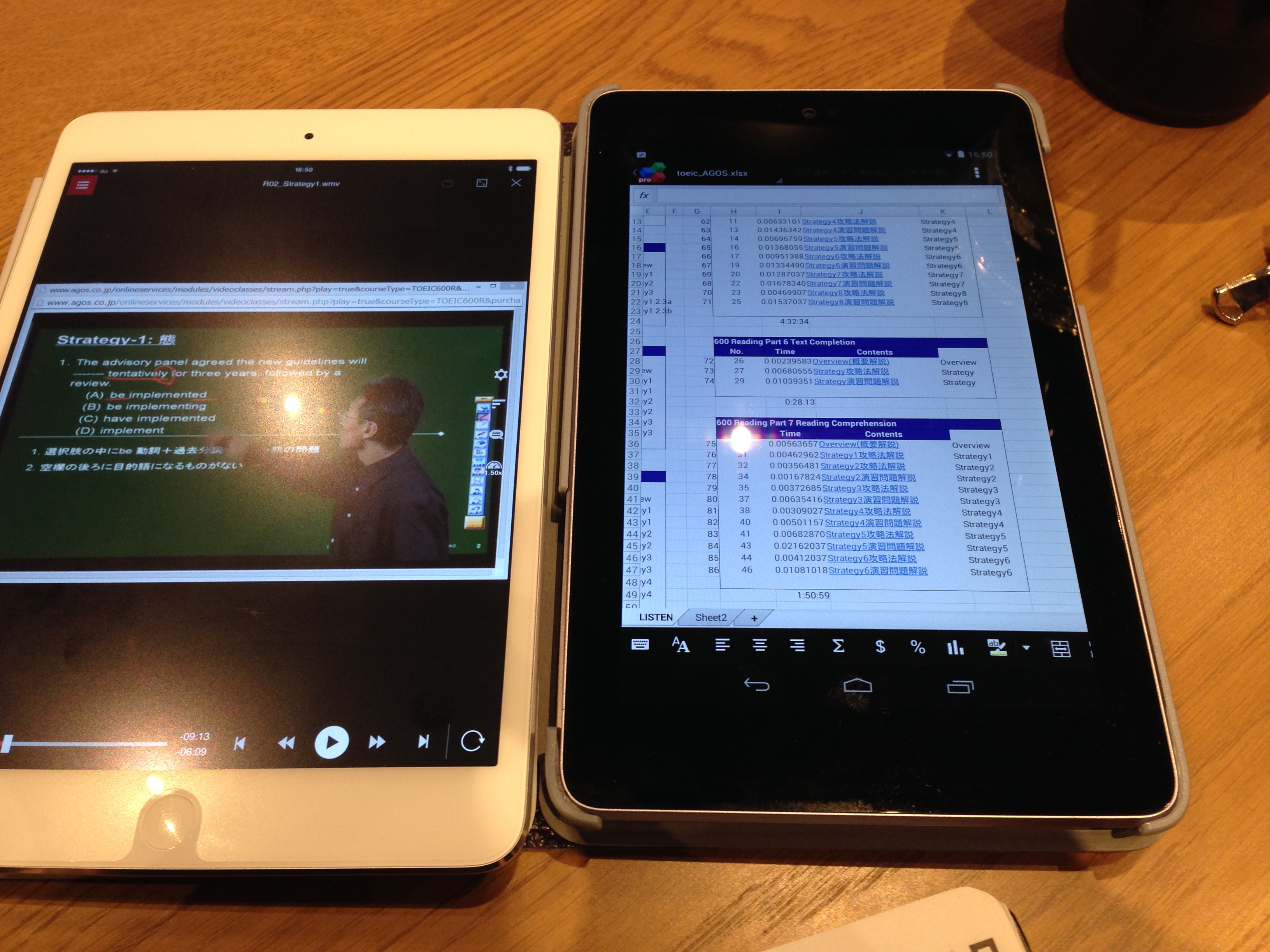 もう1台は教材(PDF)の閲覧。