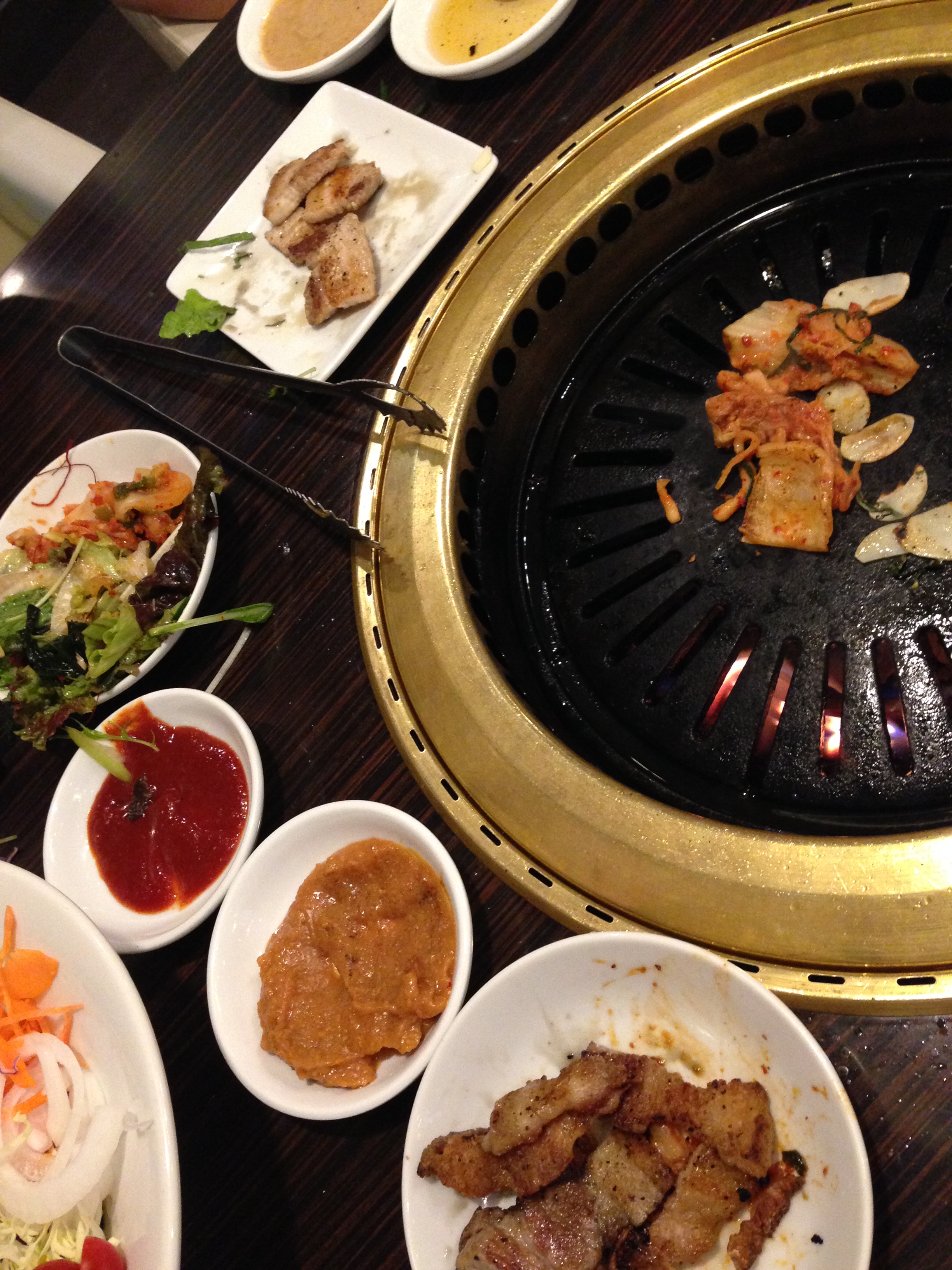 晩飯のサムギョプサルの店へ。2時間弱居たかな。
