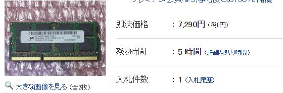 昨日落札したノート用の増設メモリを購入。
