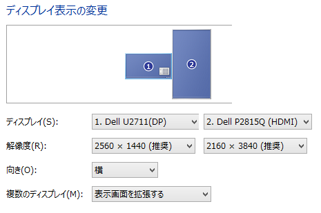 結局、28型4KにはHDMI接続、既存の27型にはDP接続となった。
