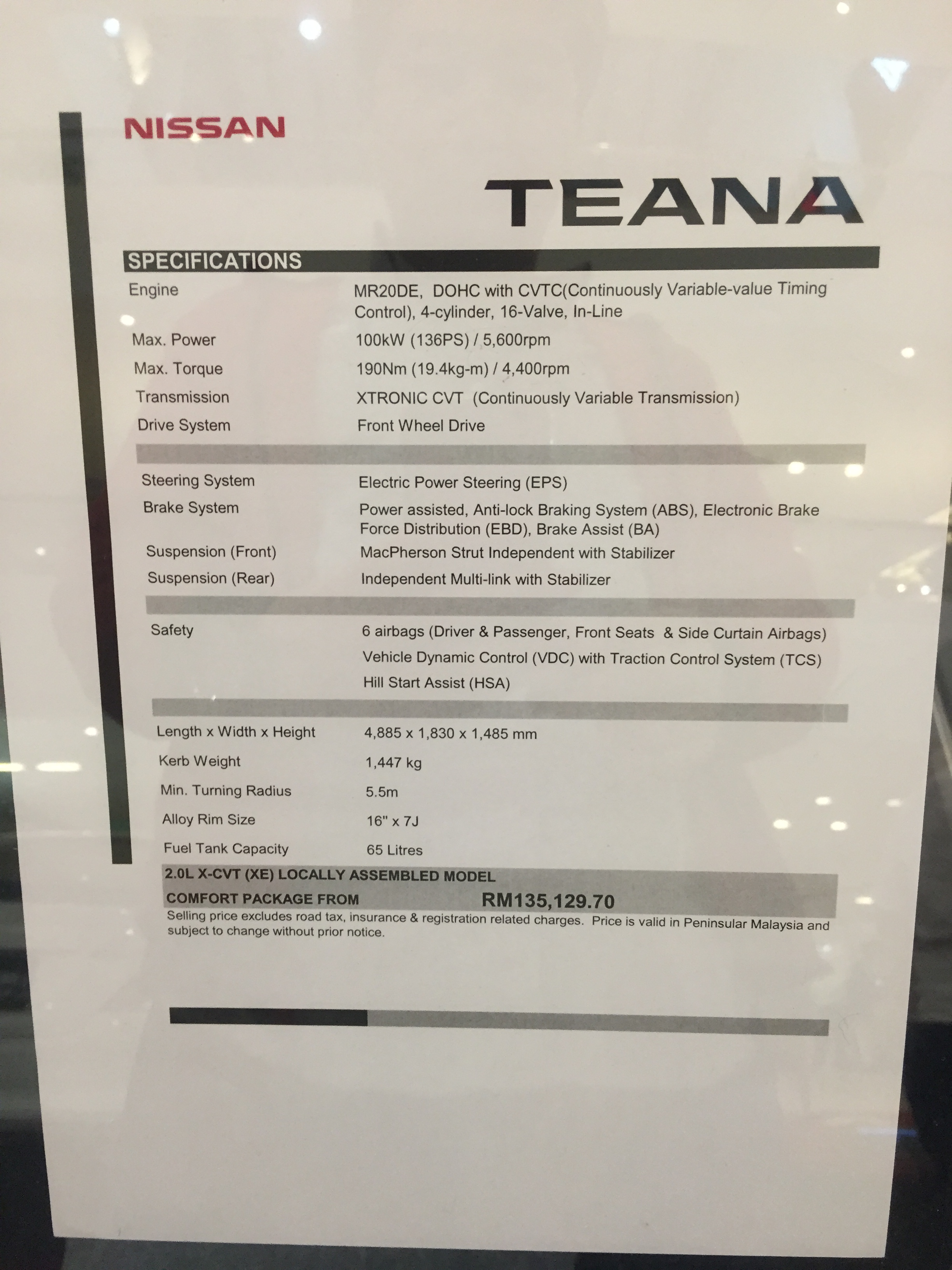 日産の車数台展示してあったが、そこでティアナを発見。