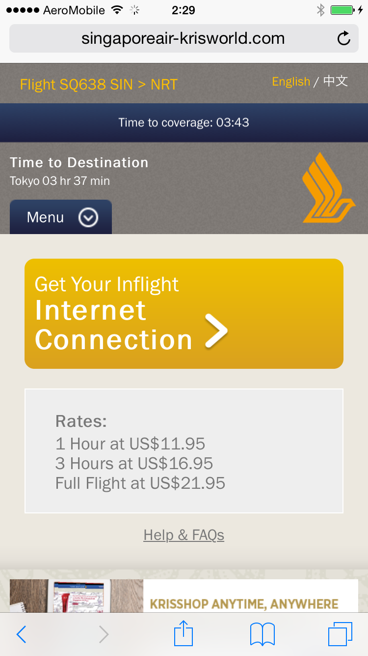 機内のWIFIの利用料を調べた。