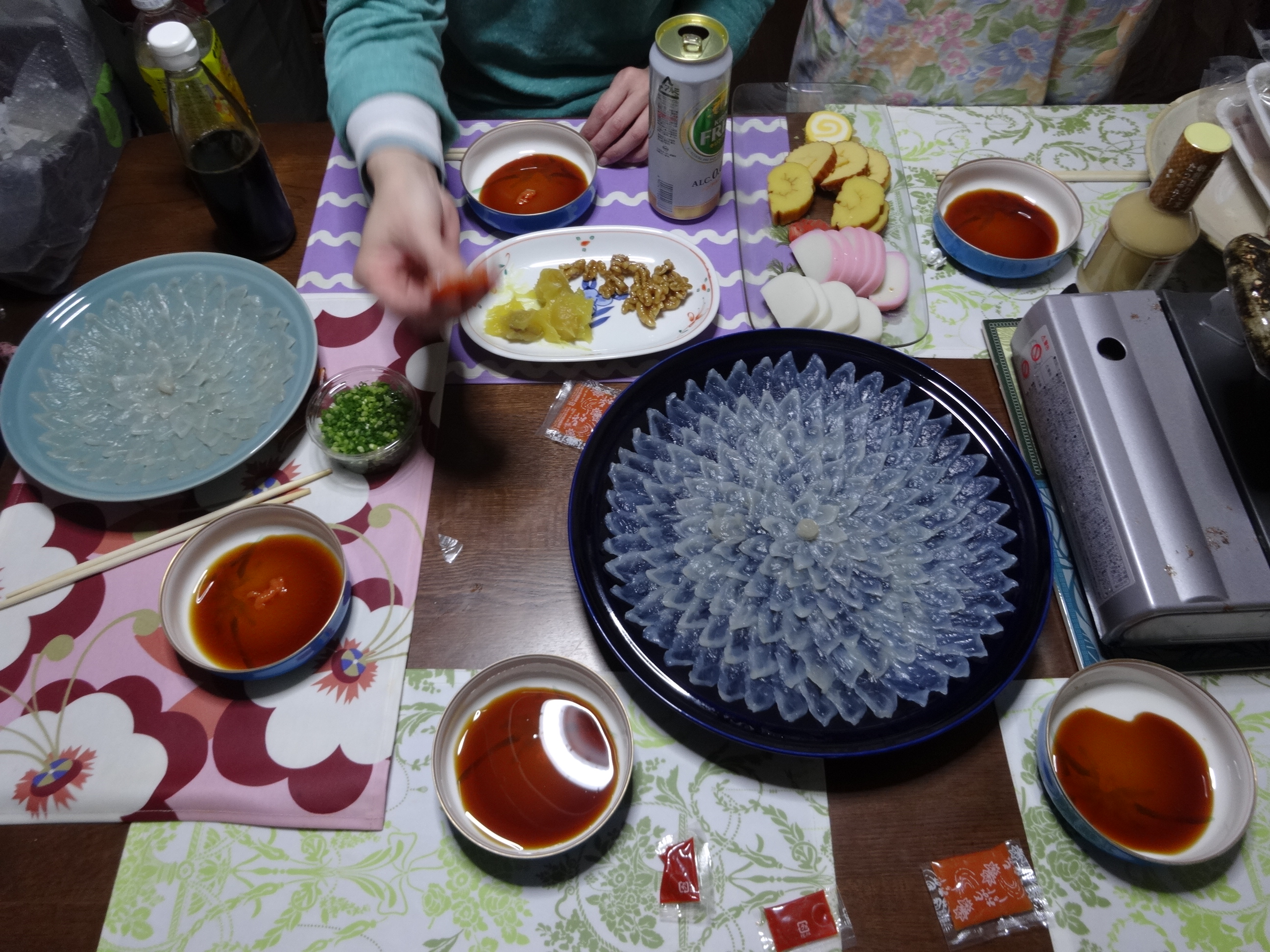 01/02 投稿日時: 2015年1月2日 投稿者: xvax 返信 8時頃起床かな。 犬のトイレ散歩。 その後、朝食に昨日のおせちを頂く。 彼女と1時間ほど仮眠。 彼女のお父さんのPCサポートなど。 実家の犬との合同散歩。 片道4kmぐらいを歩く。(計7.5kmぐらい?) そして、晩飯として毎年恒例のふぐをいただく。 19時過ぎに撤収。 帰宅後、全体写真の加工(1名漏れていたため)。
