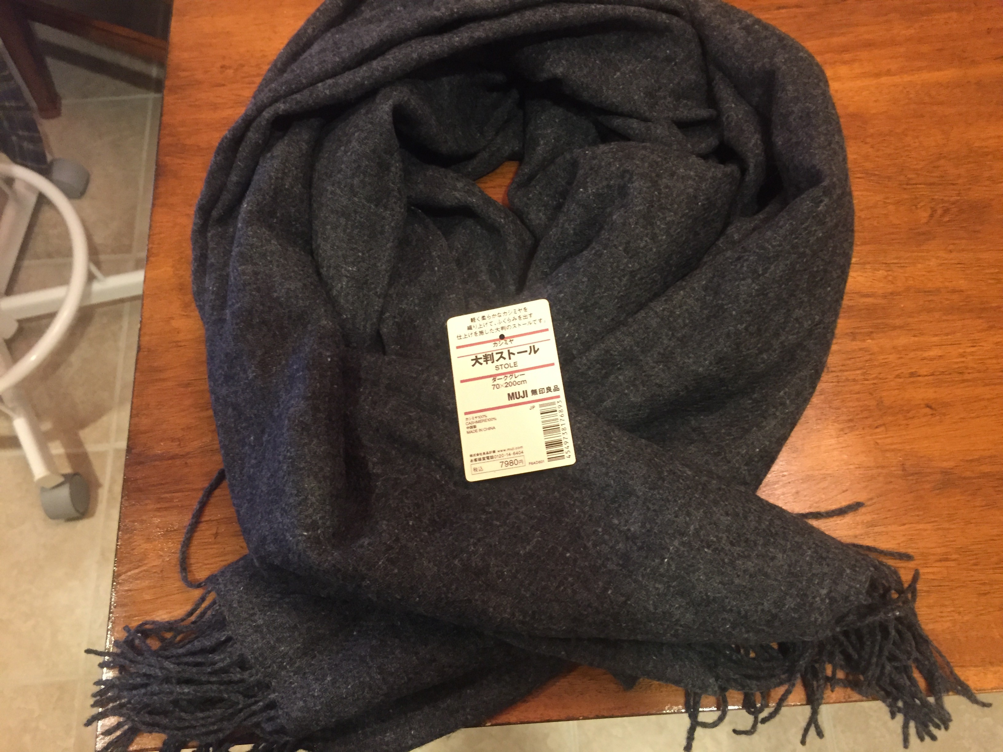 自分は、以前から欲しかった、薄いマフラーを無印良品で購入した。