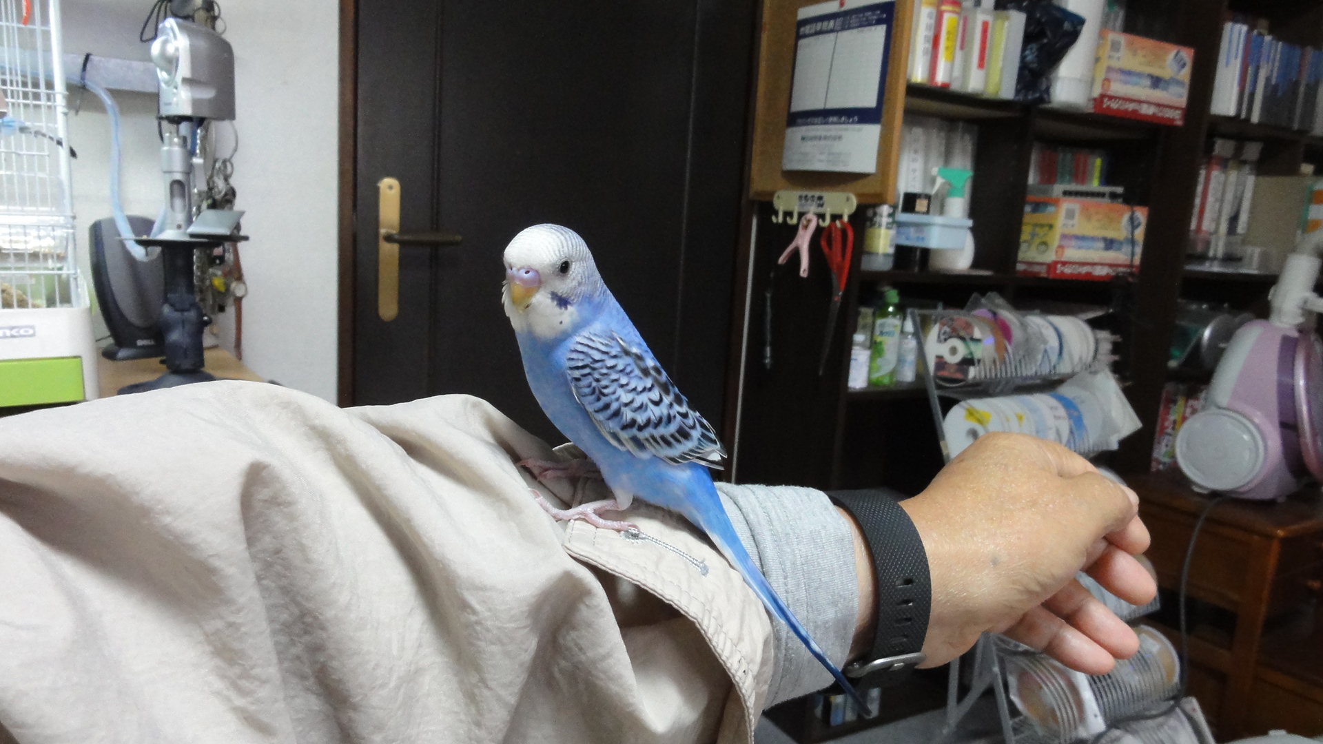 親父のピーちゃんが、遂にカゴから出てきた。
