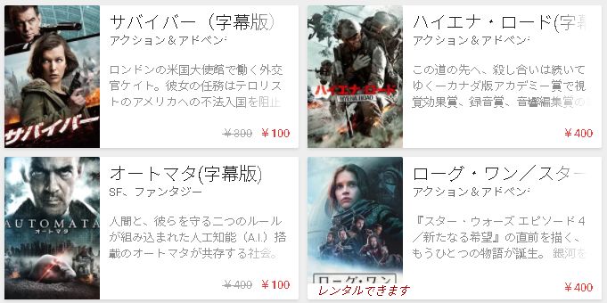 Google Playにて、4本ほどビデオレンタル。