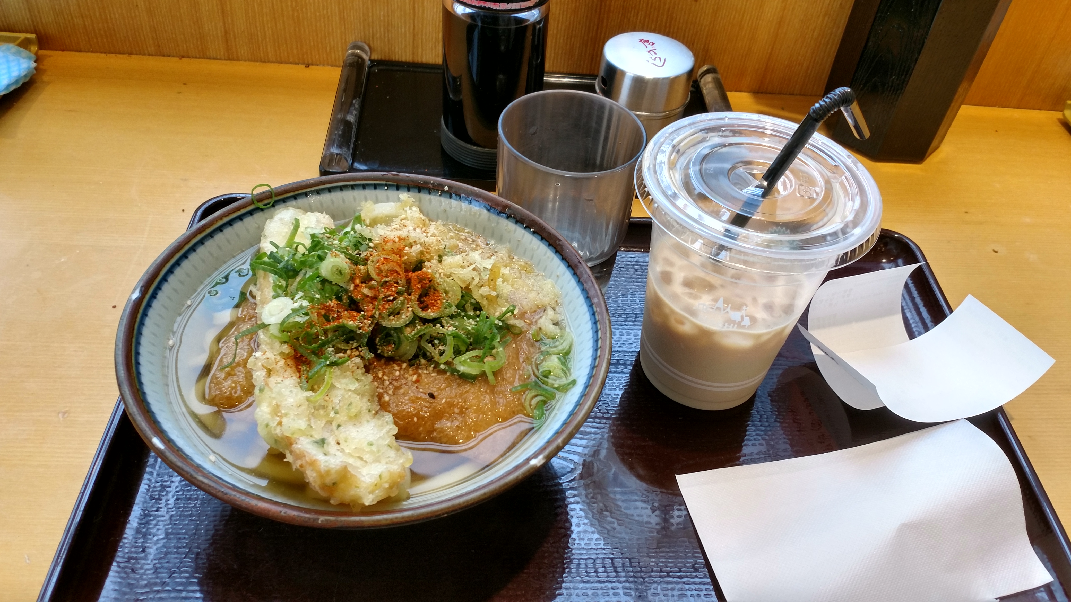アイスコーヒーを飲んで、自分だけ更にうどんを食べる。
