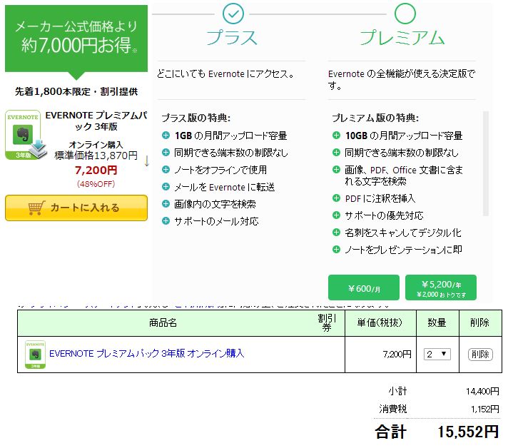 朝一、ソースネクスト社からのDMでEvernote 3年分x2本を衝動買い。