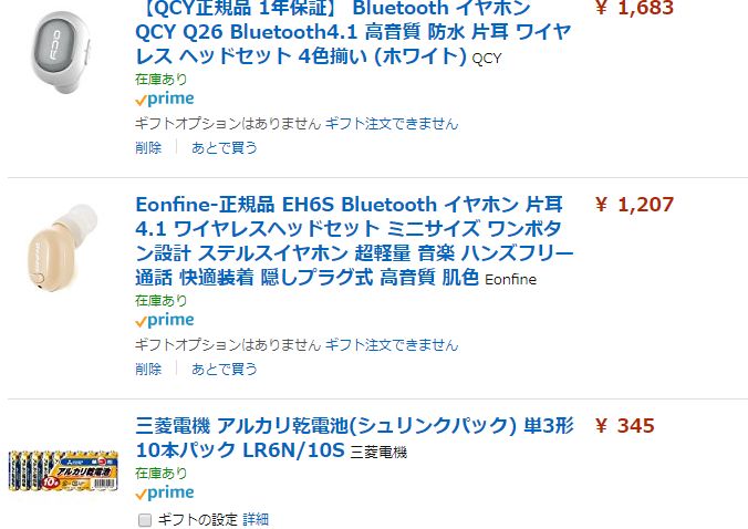方耳イヤホンを2種類注文。