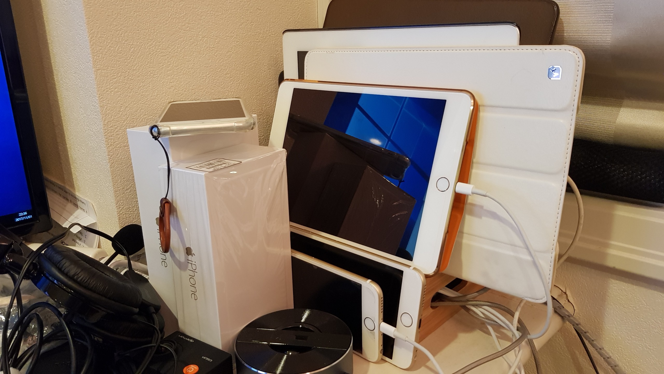 写真に写っているのは、iPhone3台、iPad4台。
