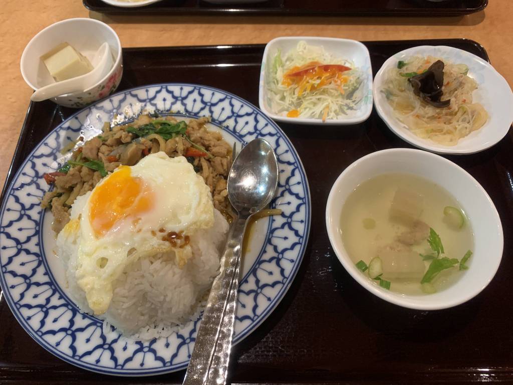 ランチは同僚とガパオの店へ。