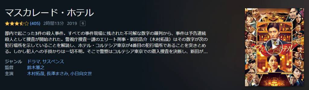 午後、奥さんとプライムビデオで「マスカレード・ホテル」を視聴。