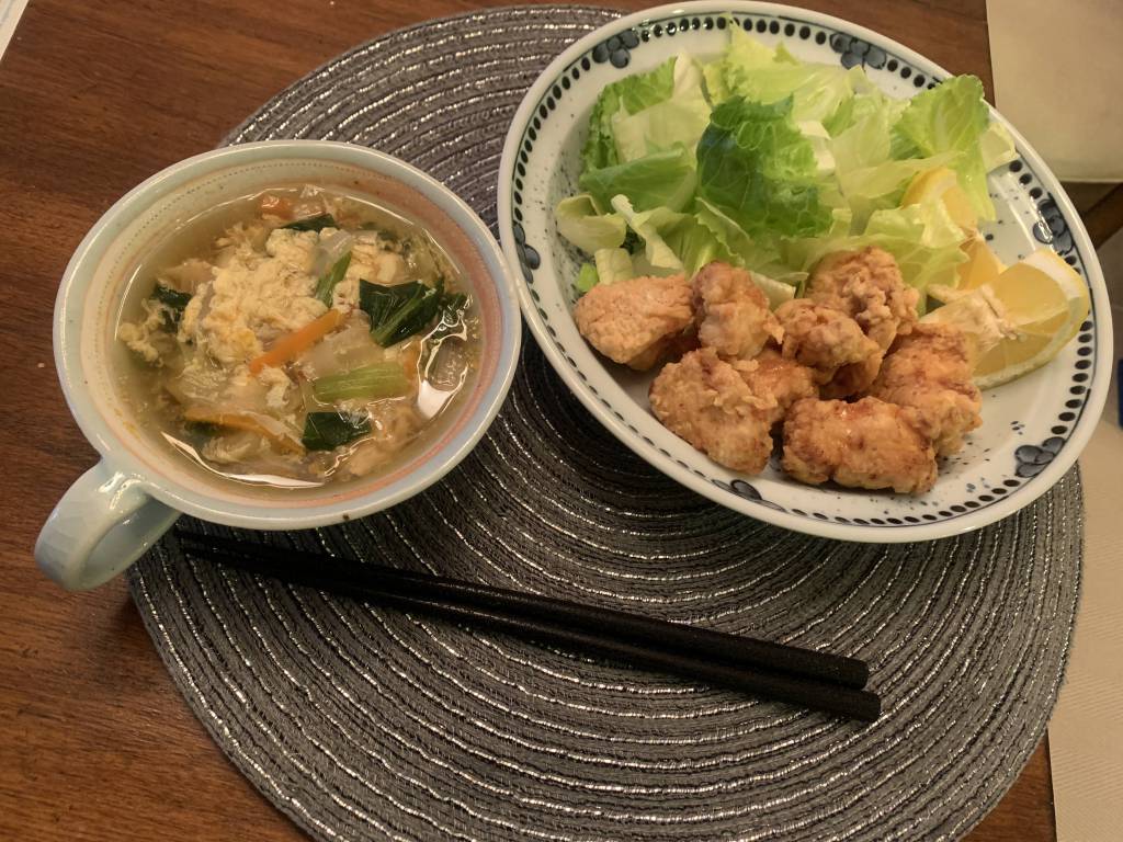 晩飯は奥さんの手作り唐揚げ。