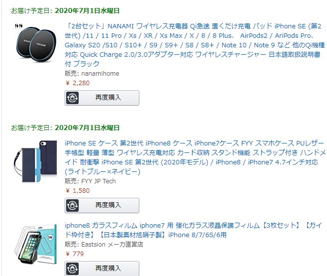 親父用のiPhone8の周辺機器をAmazonで注文。