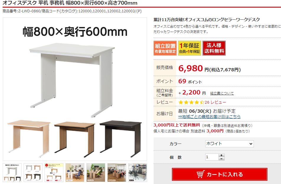 自宅用の自分用のデスクを注文した。