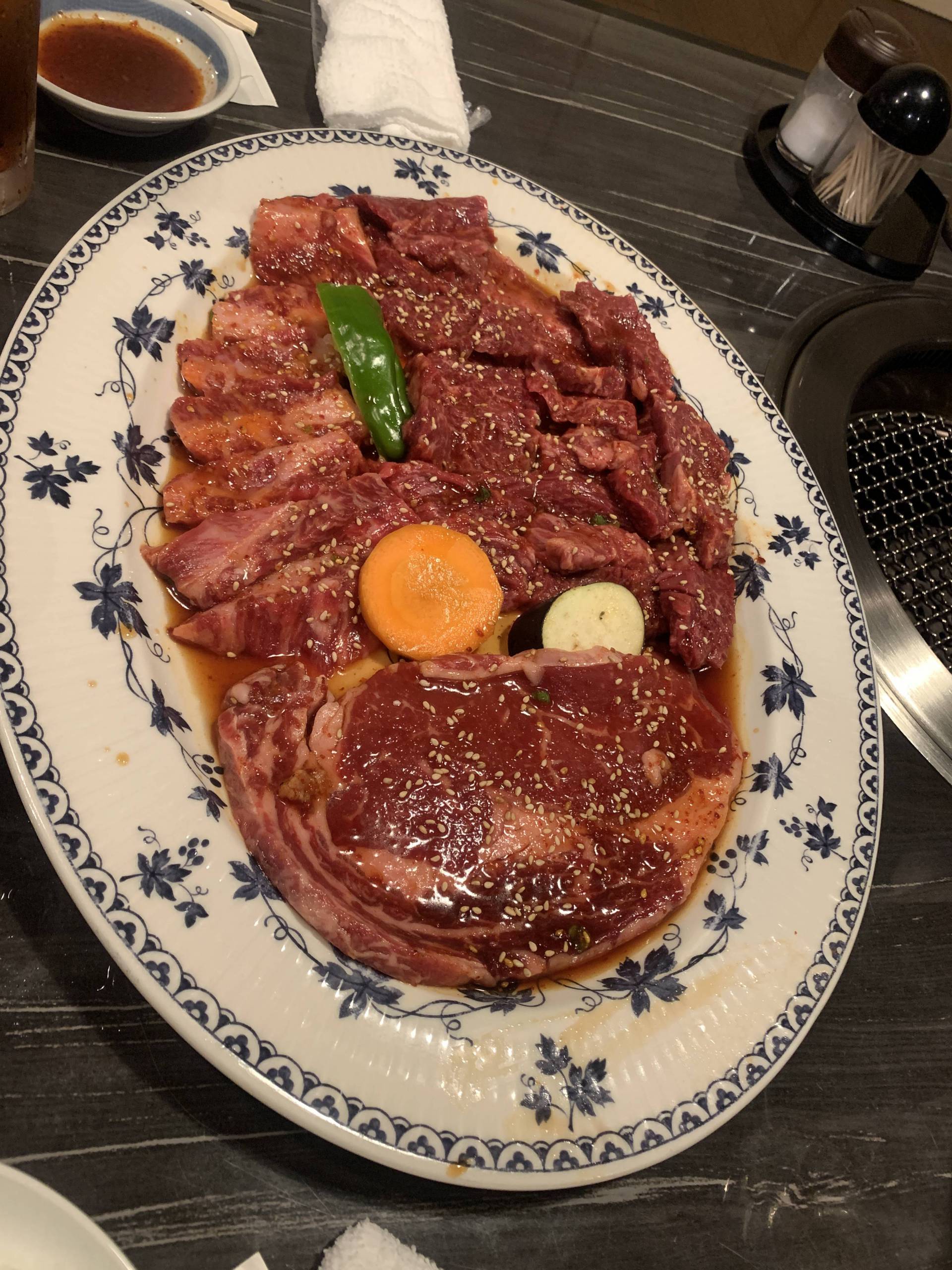 近くの焼き肉屋で美味しく頂いた。
