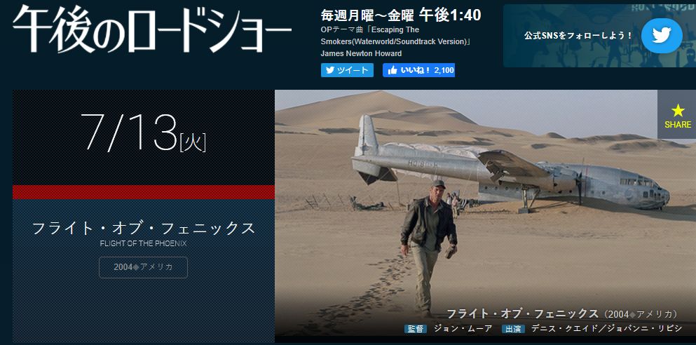 TV東京 映画「フライト・オブ・フェニックス」を視聴。まぁまぁ。