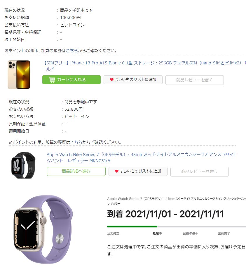 ビットコインが610万円ということで、ついでにiPhone13 Proも注文した。