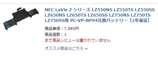 NEC LaVie Z シリーズ LZ550NS LZ550TS LZ550SS LZ650NS LZ650TS LZ650SS LZ750NS LZ750TS LZ750SS用 PC-VP-BP94互換バッテリー【1年保証】