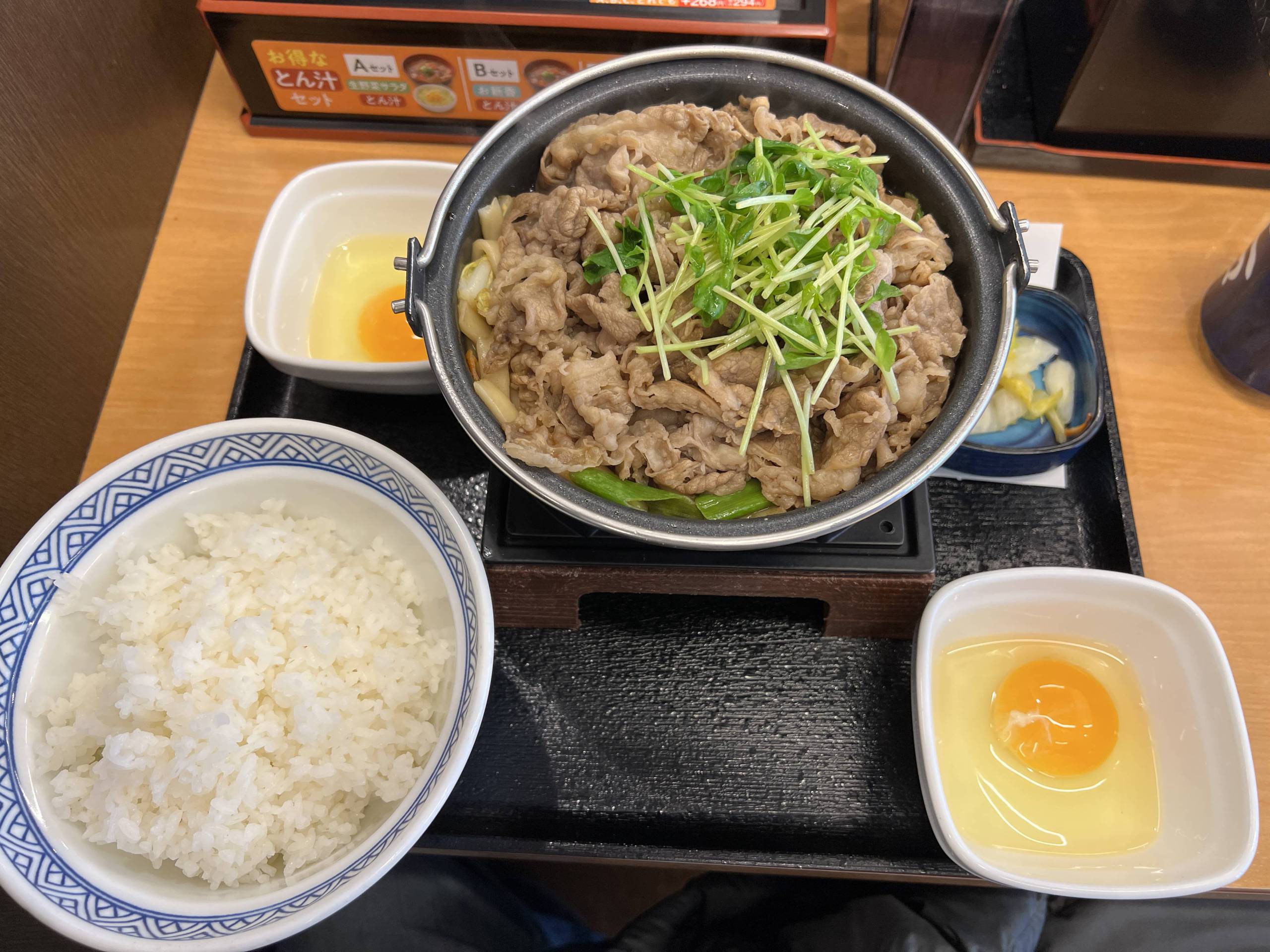 ゴミ出し後はいつも通り、吉野家で特朝定食を食べて帰宅。