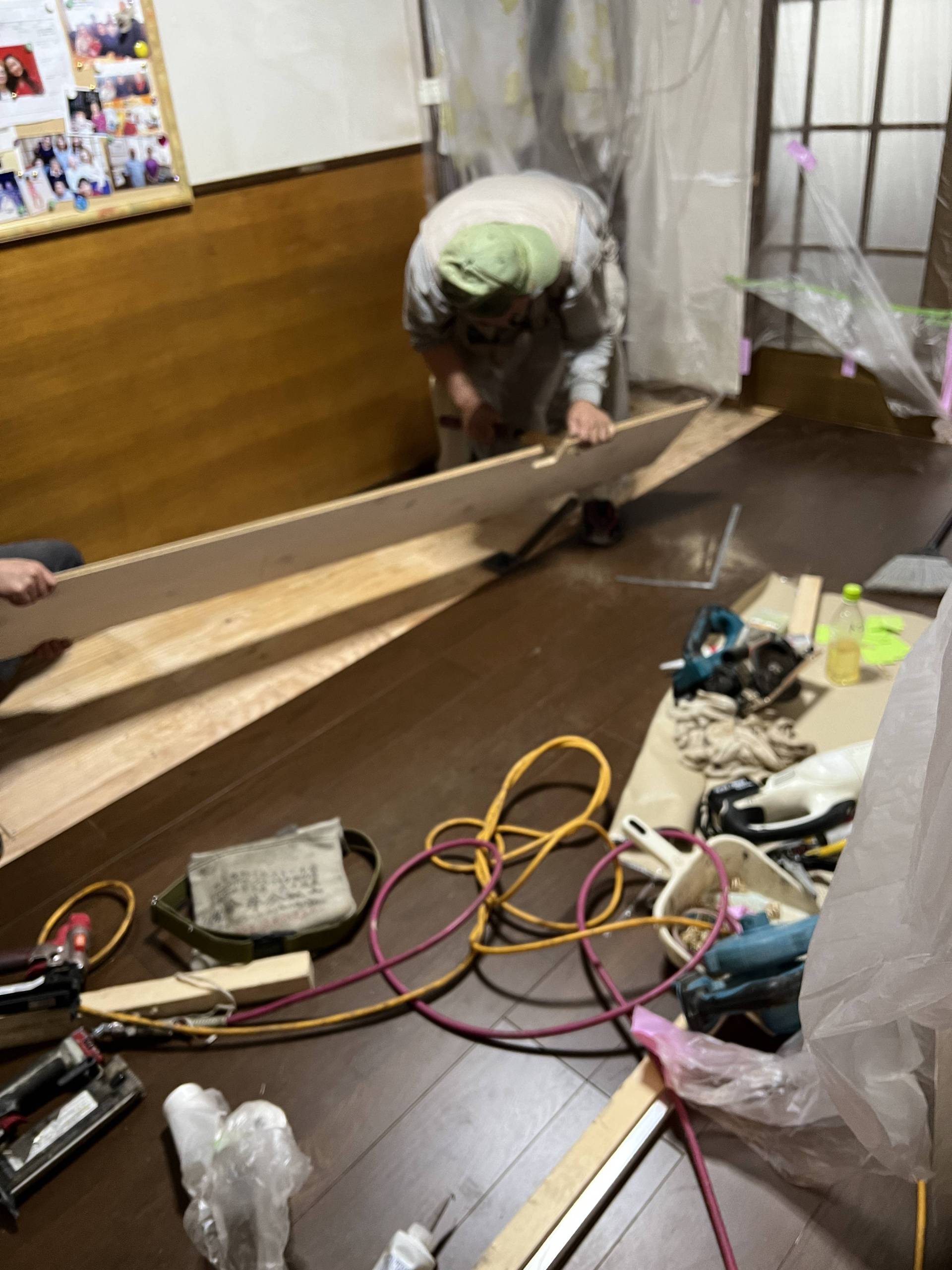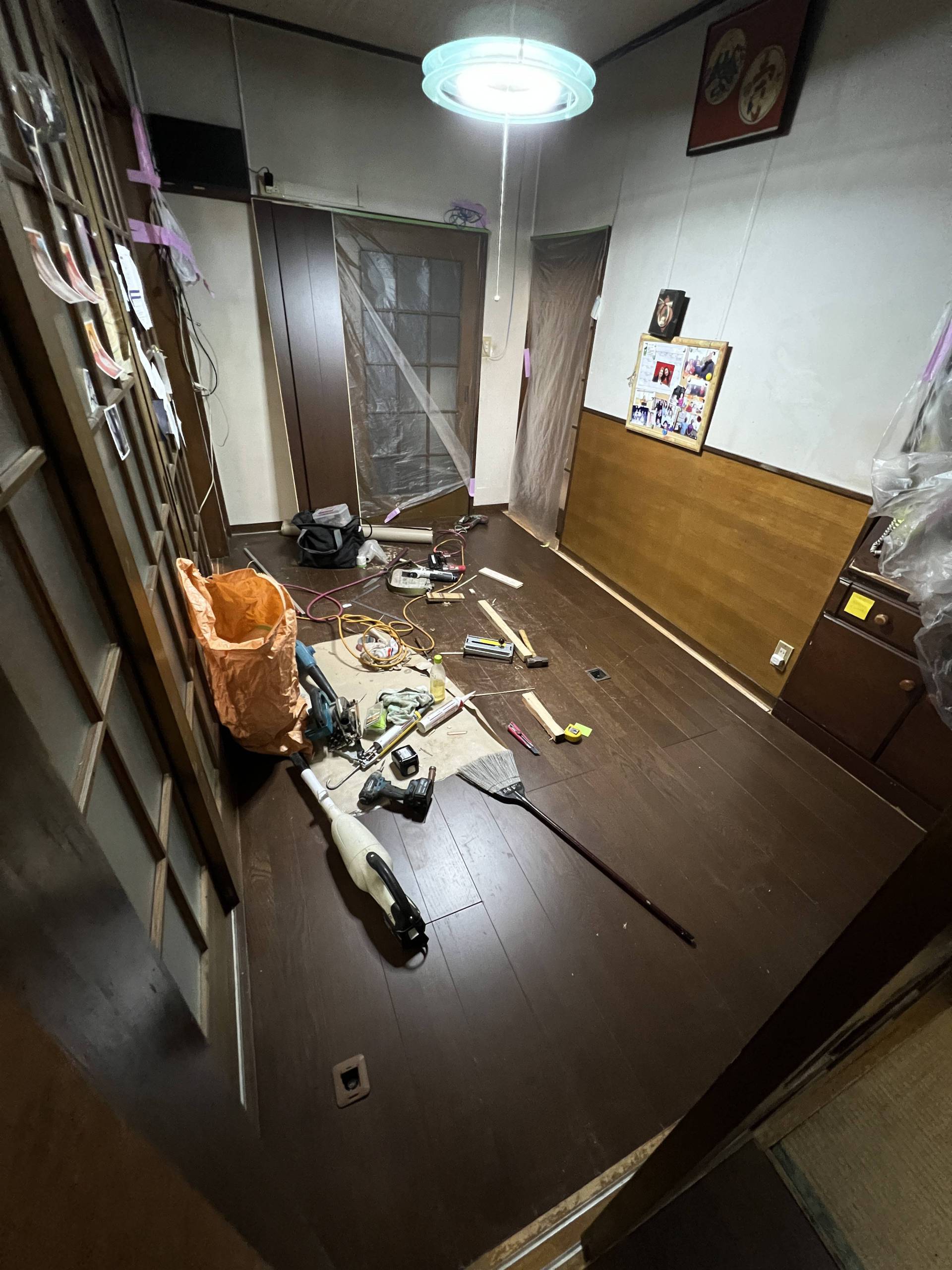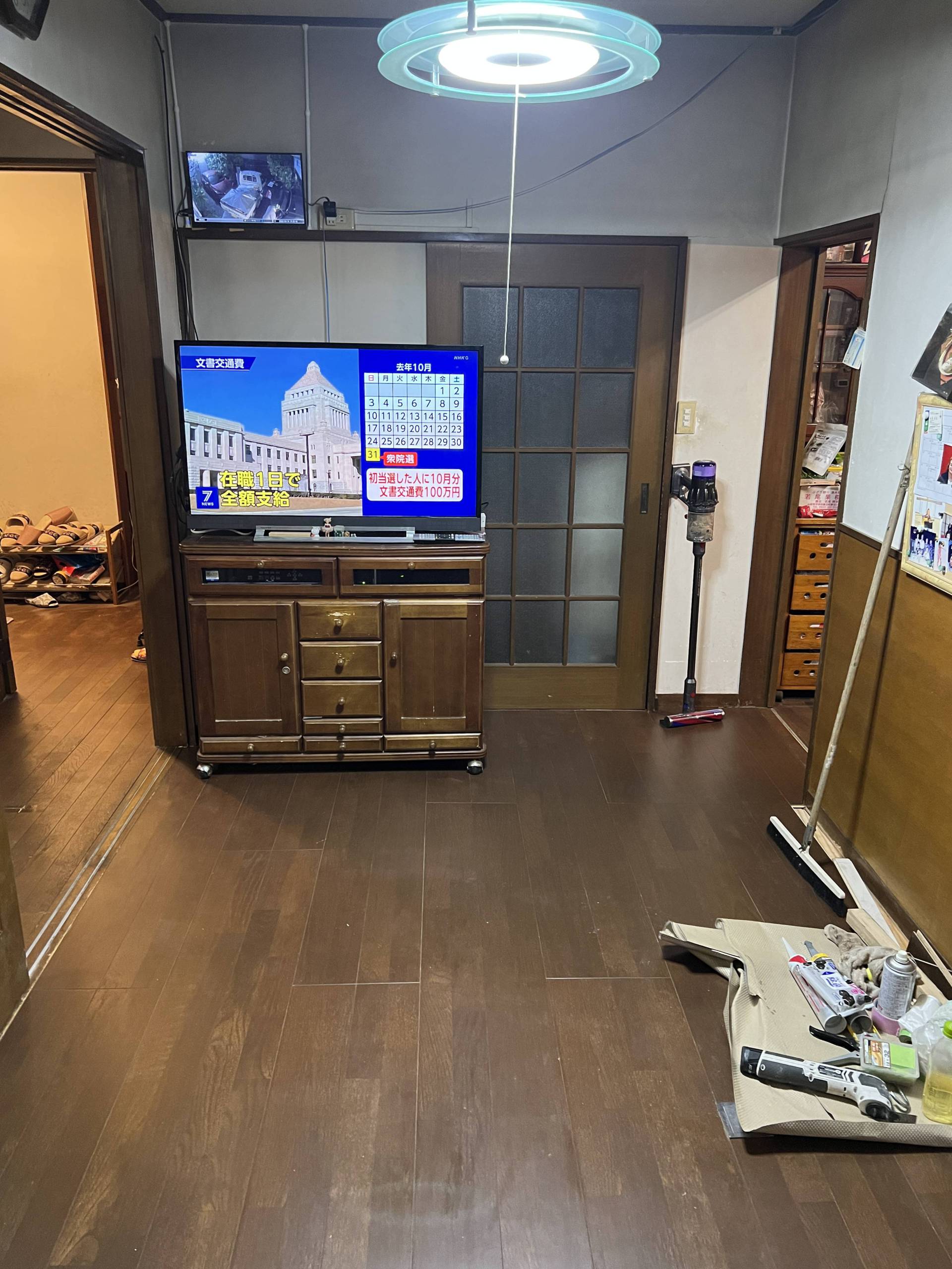 04/14 投稿日時: 2022年4月14日 投稿者: xvax 返信 床工事二日目。業者は8:30に登場。今日は雨で寒い。床に断熱材を入れて最終の床を貼る。 ホームセンターへソファー用の補強台を購入。ランチはマクドナルドで持ち返り。 明日のゴミ用に倉庫を掃除。靴を大量廃棄。その他色々と5袋出来た。 リビングルームの工事は95%完成で終了。最後にTVだけを戻して貰った。 TVを見ながらの晩飯でした。 介護保険認定証が届いた。