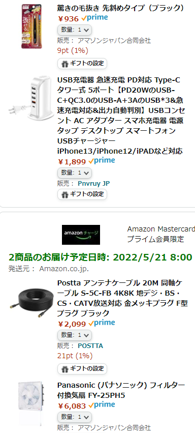 Amazonで必要な物を注文。