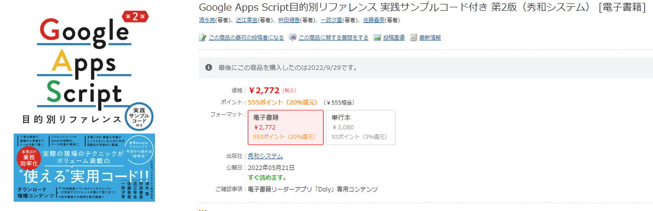 午後は先日購入した書籍を読みながらGASの勉強。