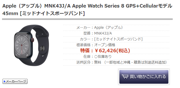 Apple Watch Series 8 GPS+Cellularモデル 45mm MNK43J/A [ミッドナイトスポーツバンド]