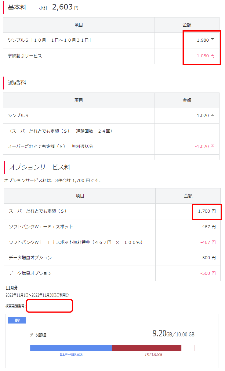 現在の携帯の契約内容は3GB(1年間5GB)