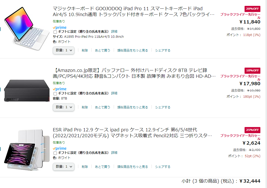 AmazonがBlack Fridayを実施中で、以下の三点を購入。