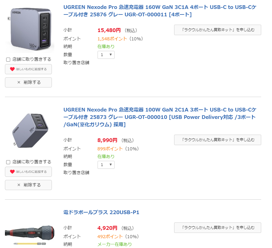 100WのTYPE-C 充電器を2つ購入した。ビックカメラ