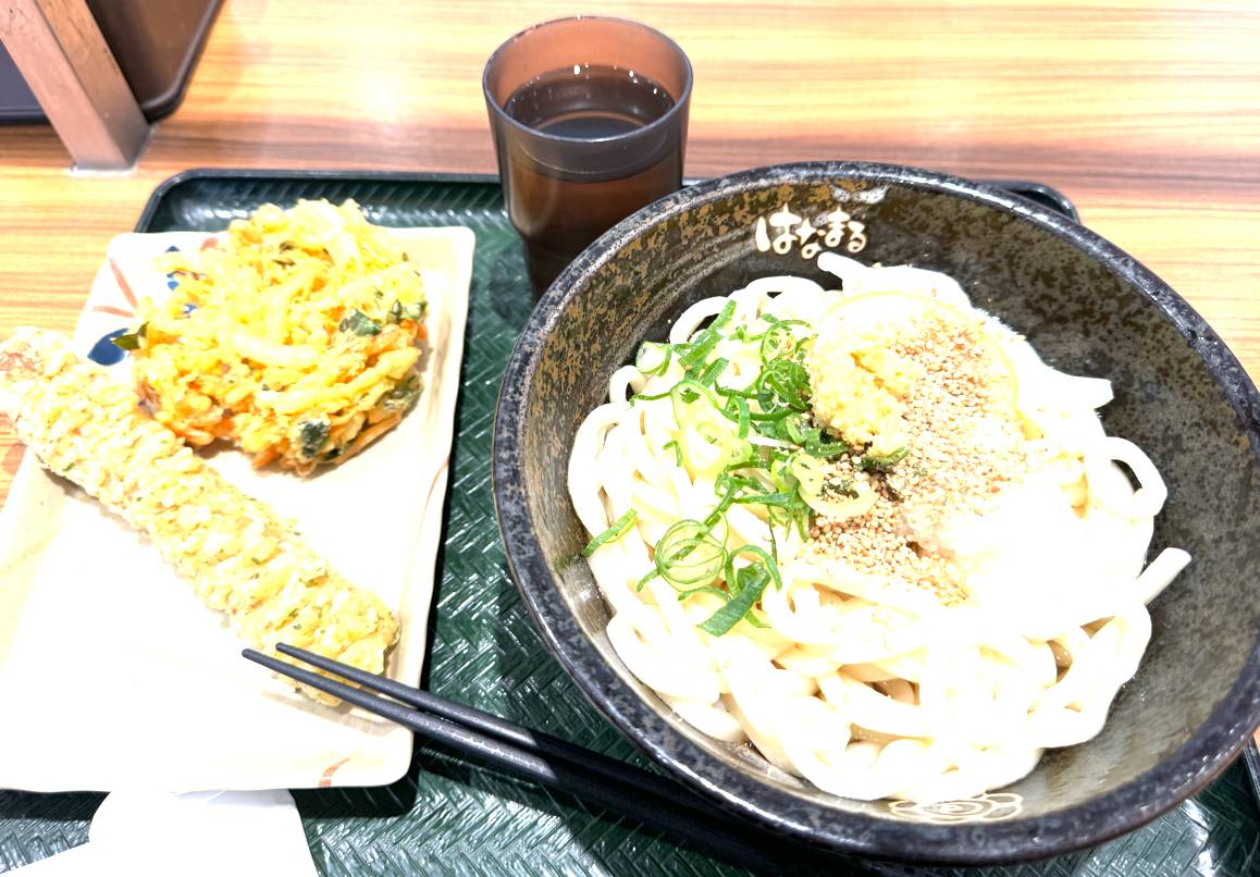 最寄り駅まで戻ってきて、はなまるうどんで ぶっかうどんを久しぶり(数年振り)に食べた。