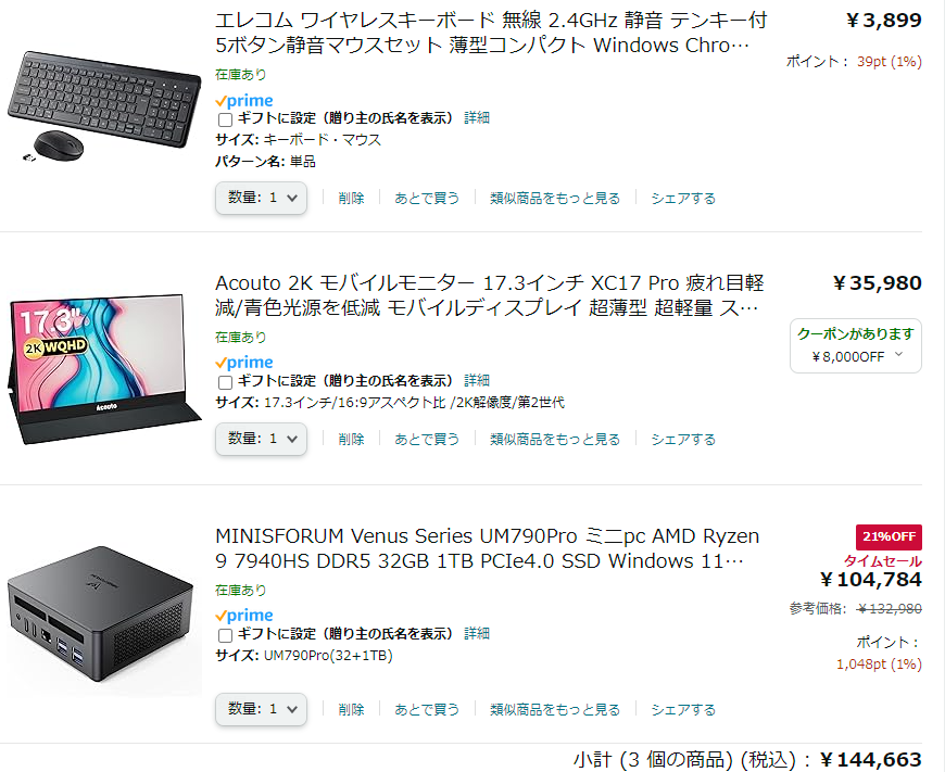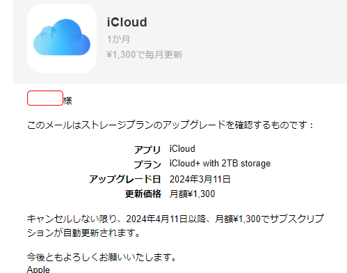 03/12 投稿日時: 2024年3月12日 投稿者: xvax 返信 ここ1年? iOSのバックアップ先も兼ねているicloudの容量200GB 400円/月が容量不足となっていたが、本日腹をくくって、2TB/月 1300円でアップグレードを実施した。 スマフォをこれだけ使っている昨今、ケチったらダメだと自分を説得した。 元同僚に頼まれて新PCの準備中。見積もりを提示した。15万円コース。
