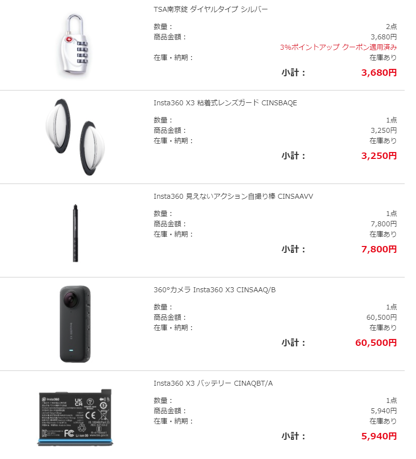 360度カメラを一式を注文した。 8万円強