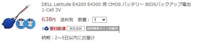 06/03 投稿日時: 2024年6月3日 投稿者: xvax 返信 嫁さん用のノートパソコン latitude 5280CMOSバッテリーが切れたため、注文した。楽天ショップ DELL Latitude E4200 E4300 用CMOS バッテリー BIOSバックアップ電池 1-Cell 3V 仕事用のPC環境を準備してみた。