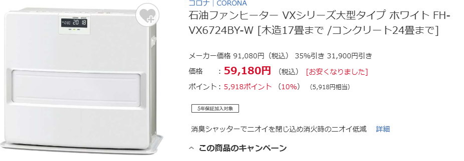 石油ファンヒーター VXシリーズ大型タイプ ホワイト