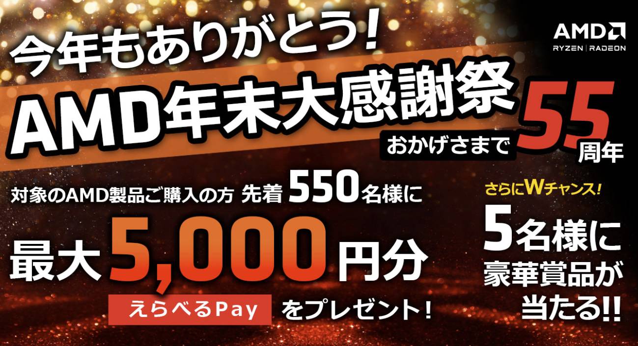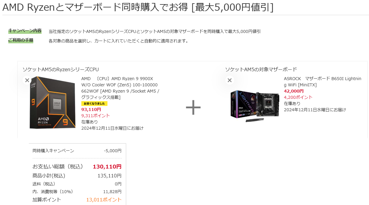 AMDキャンペーン(MBセットで5000円引き、CPU5000円引きは抽選)の