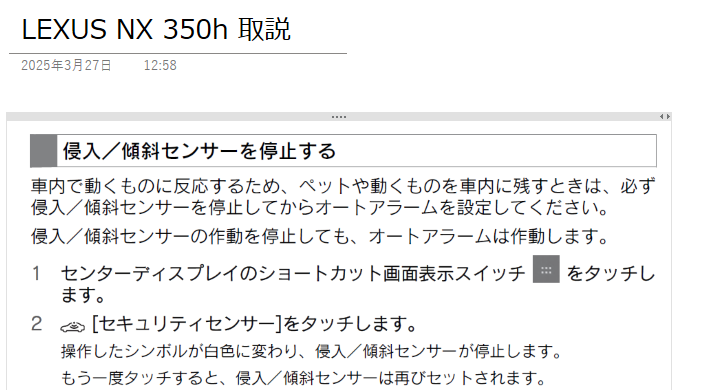 LEXUS NXの取扱説明書をダウンロードして少しずつ読み始めた。