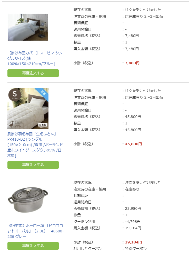 羽毛布団を注文した。