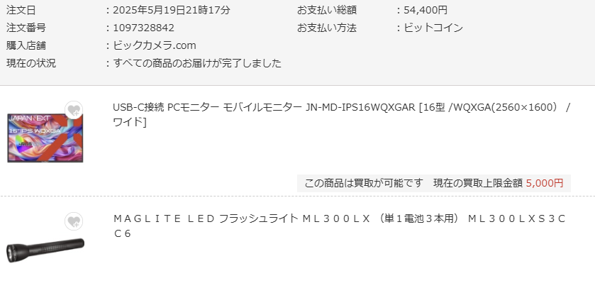 5/19に注文したモバイルモニタとマグライトが納品された。