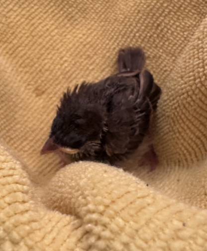 昨日拾った、スズメの子供だが、夜間亡くなっていた。